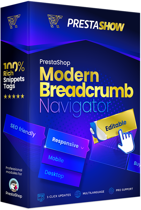 Das Modul ergänzt die Rich Snippets Tags des Navigationsmenüs auf den Shopseiten, auf denen es angezeigt wird. Dadurch wird die Sichtbarkeit von PrestaShop in den Suchergebnissen verbessert und Ihre Shop-Ergebnisse werden für den Betrachter interessanter.