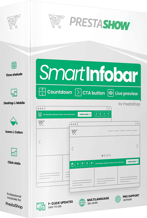 Create bars for desktop and mobile and place them anywhere in your PrestaShop store - no restrictions.