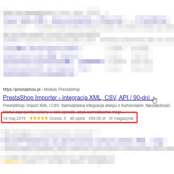 The schemaof your online store will include all the necessary tags, so that your store's Rich Snippet in search results looks great.