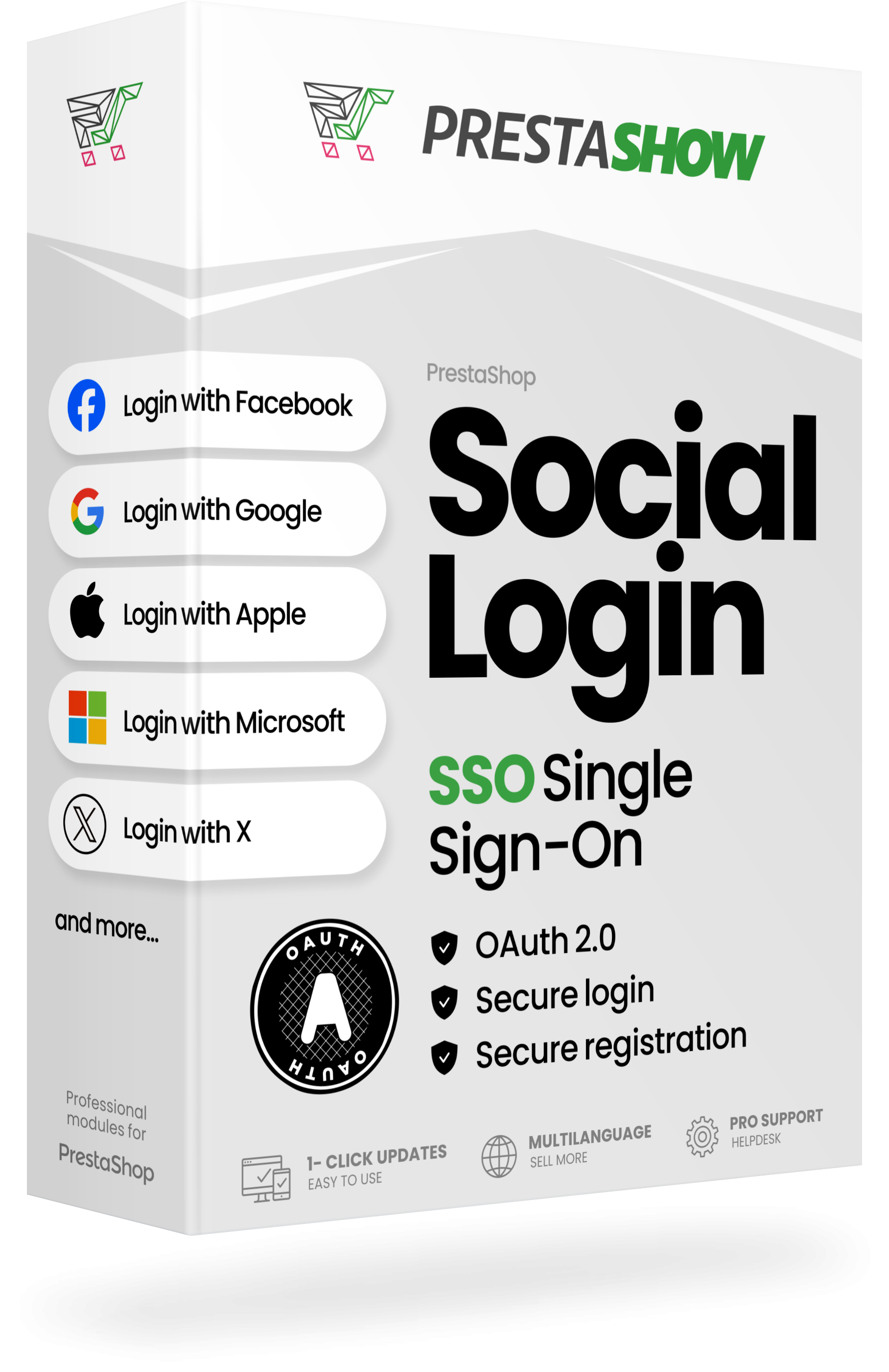 SSO (Single Sign-On) est un mécanisme fourni par des services populaires qui permet aux utilisateurs de se connecter à plusieurs plateformes avec un seul ensemble d'informations d'identification. Cela permet aux utilisateurs d'utiliser plus facilement différents services (par exemple, les boutiques, le courrier électronique, les services en ligne) sans avoir à se souvenir du mot de passe pour chaque service. Le SSO est basé sur la technologie OAuth et fournit une sécurité élevée et une intégration de système facile. Le SSO améliore l'UX de la boutique PrestaShop et augmente les conversions.