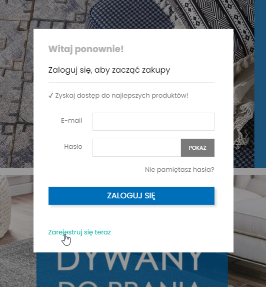 En entrant dans la boutique, l'utilisateur verra apparaître un POP-UP avec un formulaire de connexion, un rappel du mot de passe et un lien pour enregistrer un compte.